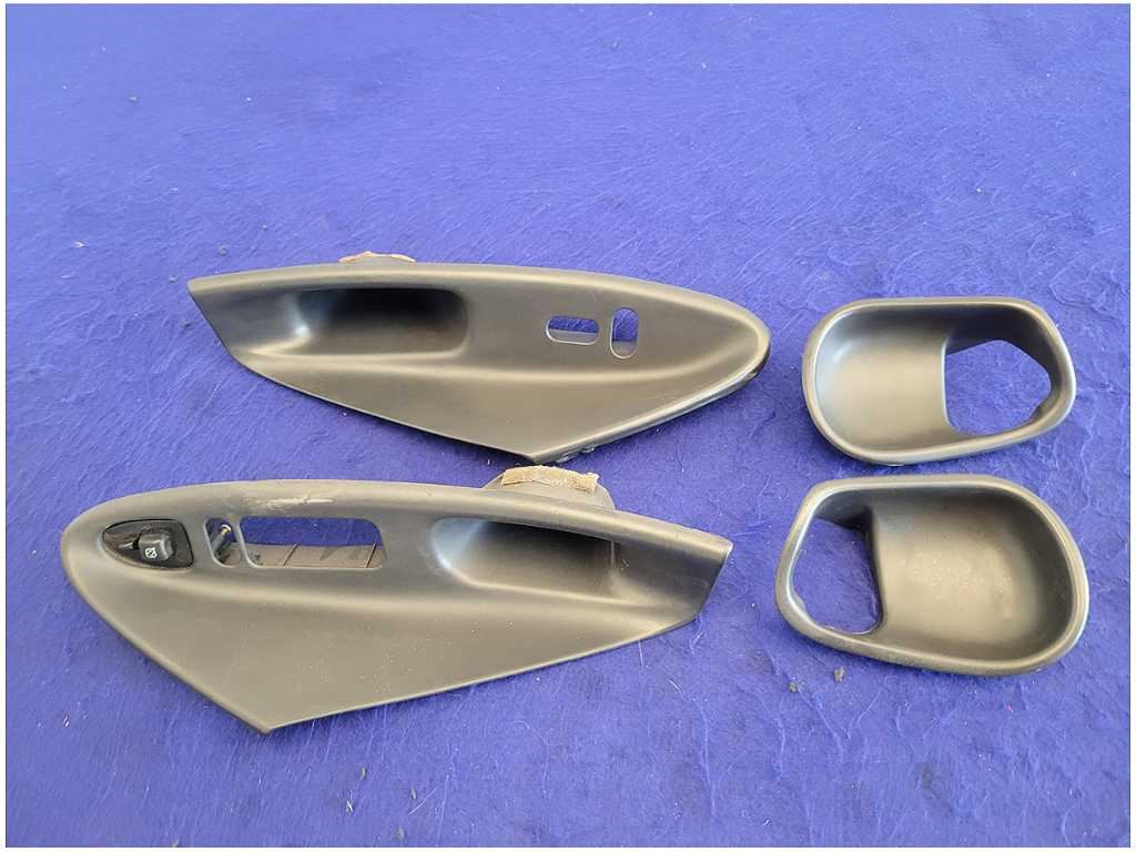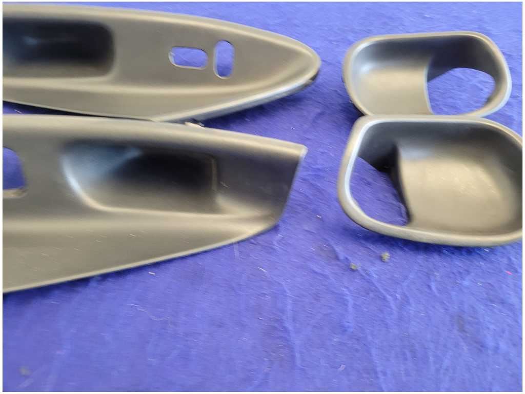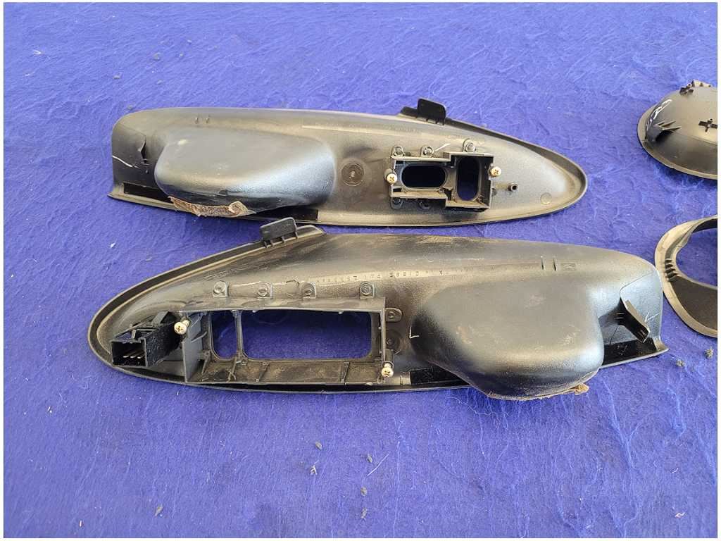 Pair of Convertible Door Handle Pulls that was removed from a 2004 Ford Mustang Cobra Convertible with 39k miles. Assembly has a broken clip!!! Scuffs and Scratches!! We believe you will be refinishing the part to be perfect. We do not warranty the color or the finish. Make sure you verify the part numbers. Please view all pictures before purchasing. This Ford Mustang Cobra Convertible had a manual transmission with paint code UA and axle code TE 3.55.