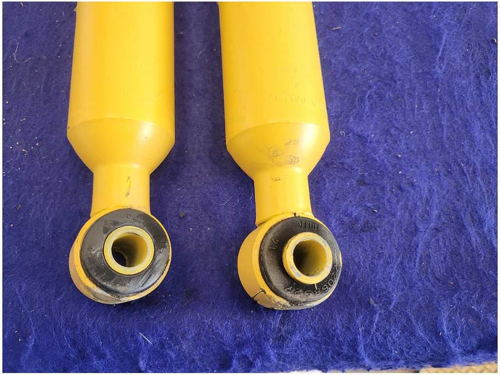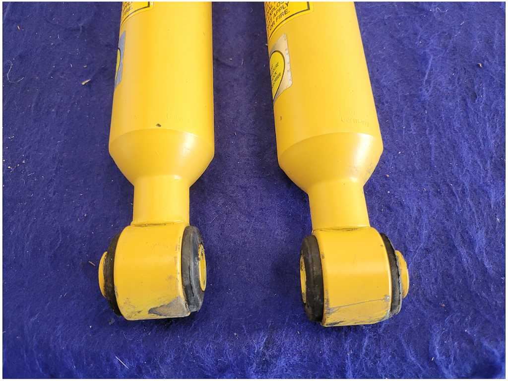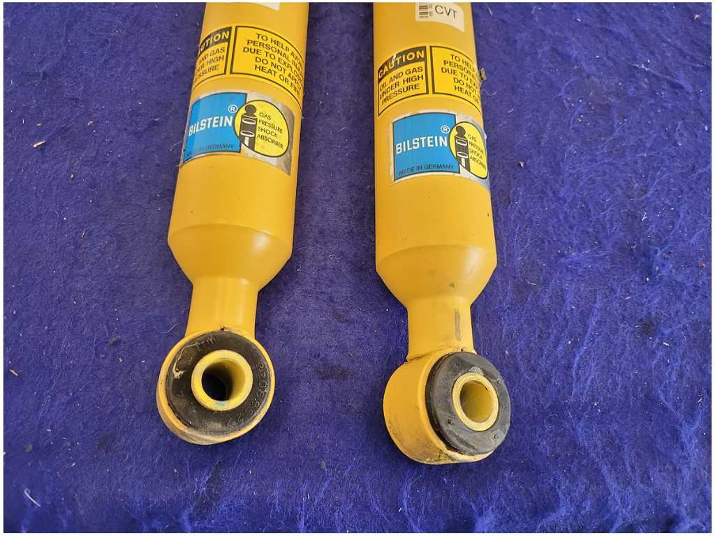 Pair of Rear Bilstein Shocks that was removed from a 2004 Ford Mustang Cobra Convertible with 39k miles. Convertible!!! Assembly is still in good condition. We believe you will be refinishing the part to be perfect. We do not warranty the color or the finish. Make sure you verify the part numbers. Please view all pictures before purchasing. This Ford Mustang Cobra Convertible had a manual transmission with paint code UA and axle code TE 3.55.