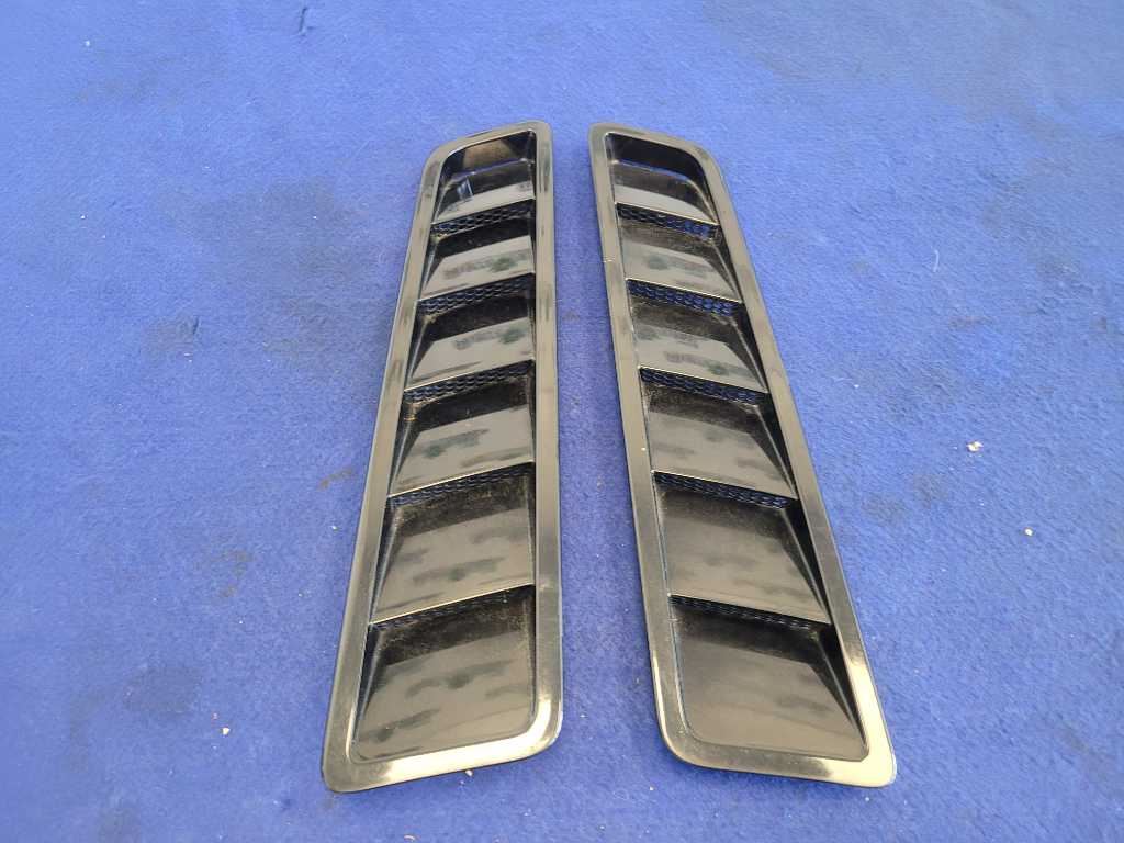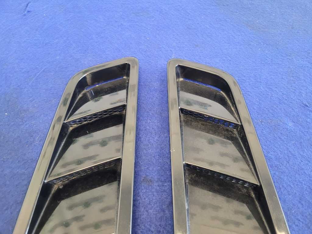 Pair of Front Hood Vents that was removed from a 2014 Ford Mustang GT Coupe with 70k miles. Broken Tab!! We do not warranty the color or the finish. Make sure you verify the part numbers. Please view all pictures before purchasing. This Ford Mustang GT Coupe had a automatic transmission with paint code UA and axle code YY 3.15.