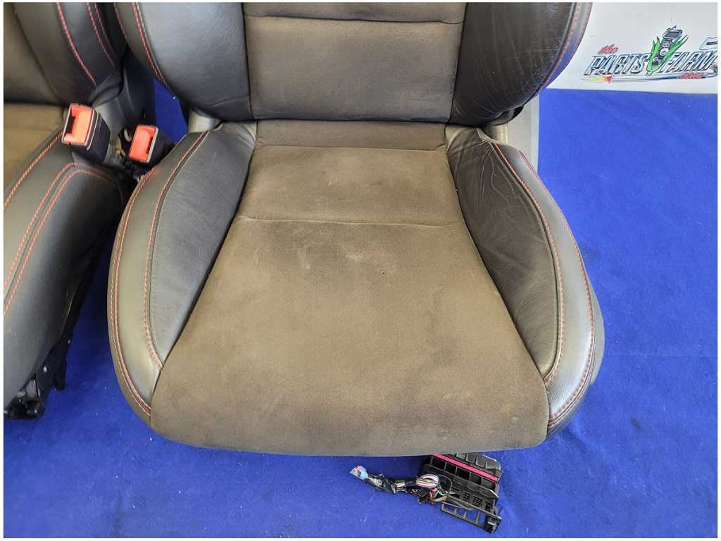 Set of Convertible Leather and Alcantara Seats that was removed from a Supercharged 2013 Chevrolet Camaro ZL1 Convertible with 38k miles. Both Seats have Power Seat Tracks. Both Seats have Good Air Bags!! Rear Seats will only fit a Convertible!! Driver Seat has a Small Burn from a cigarette or blunt!! We believe you will be refinishing the part to be perfect. We do not warranty the color or the finish. Make sure you verify the part numbers. Please view all pictures before purchasing. This Chevrolet Camaro ZL1 Convertible had a automatic transmission with green paint and 3.23 gear.