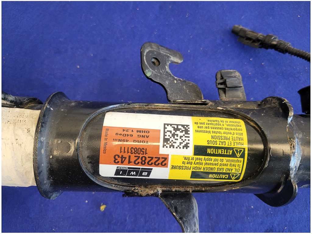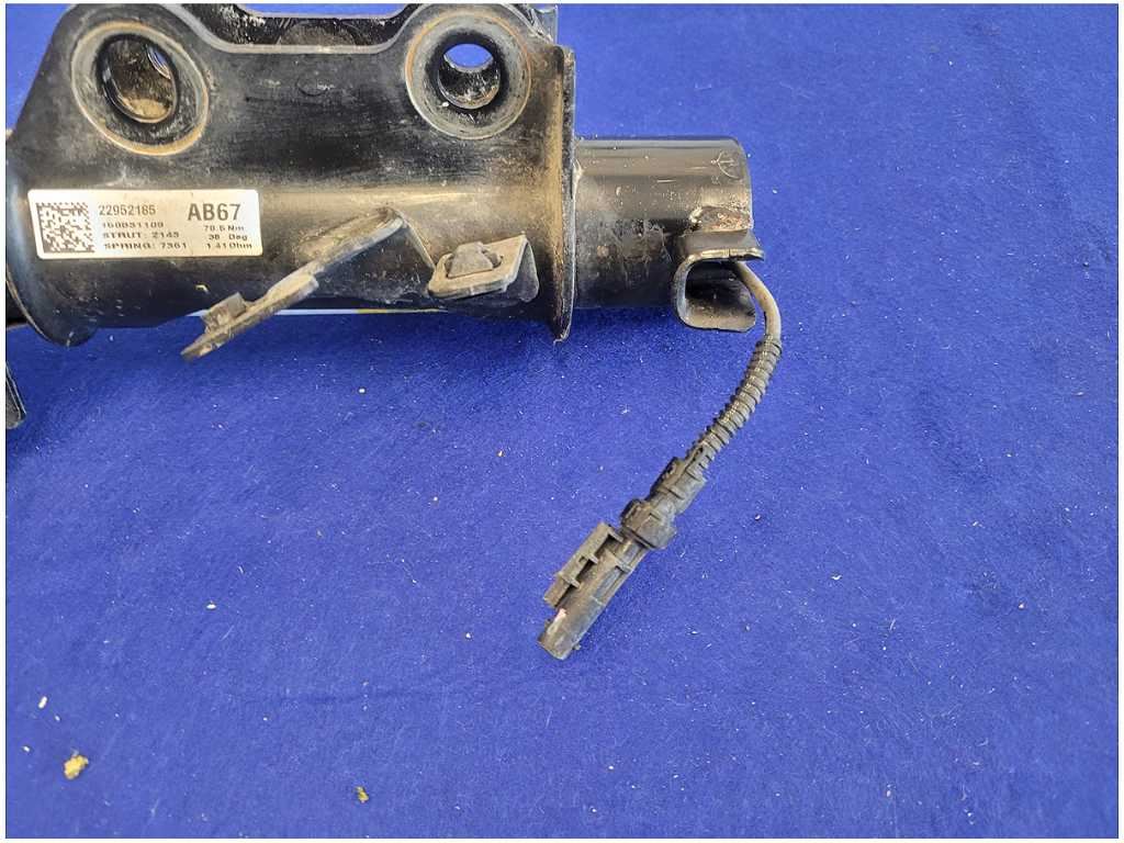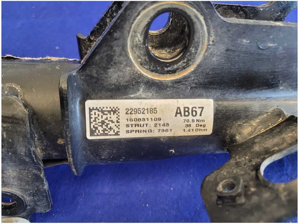 This Passenger Coupe Front Magnetic Strut and Spring that was removed from a 2015 Chevrolet Camaro ZL1 Coupe with 40K miles. Assembly is still in good condition. Please note that we do not warranty the finish or color. Be sure to verify the part number before purchasing. The ZL1 Coupe featured an automatic transmission, black paint, and axle code GU5 3.23.