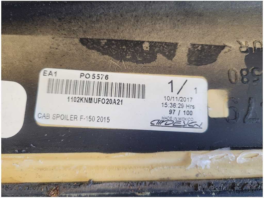Upper Cab Lip Spoiler that was removed from a Roush Supercharged 2017 Ford F150 4x4 Pickup Truck with 20k miles. Assembly is still in good condition. We believe you will be refinishing the part to be perfect. We do not warranty the color or the finish. Make sure you verify the part numbers. Please view all pictures before purchasing. This Roush Supercharged Ford F150 4x4 Pickup Truck had a automatic transmission with paint code YZ and axle code L6 3.73.