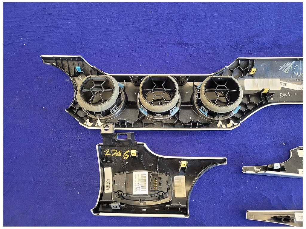 Dash Trim Kit that was removed from a 2017 Ford Mustang GT Coupe with 22k miles. Assembly is still in good condition but does have a broken tab!!! We do not warranty the finish or the color. We believe you will be refinishing the part to be perfect. Make sure you verify the part numbers. Please view all pictures before purchasing. This Ford Mustang GT Coupe had a manual transmission with paint code RR with axle code GG 3.31.