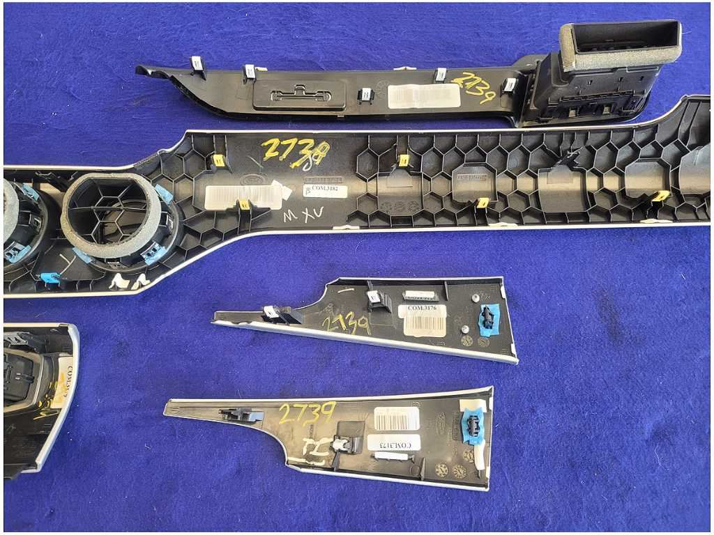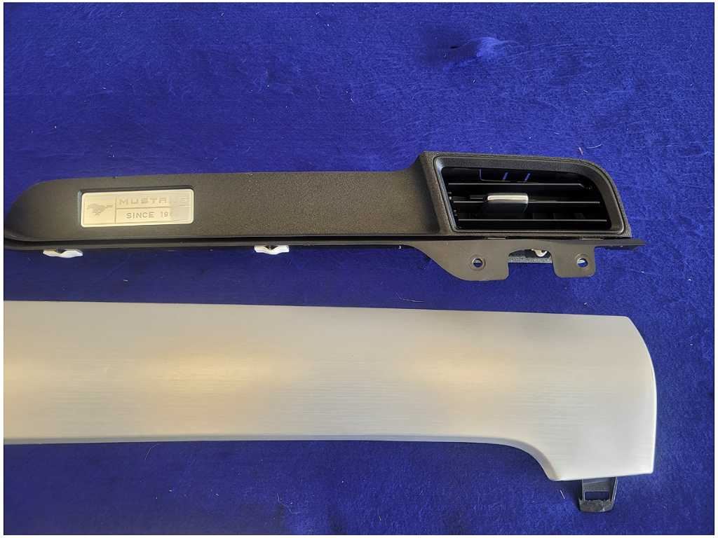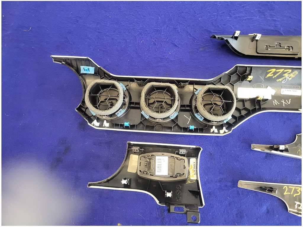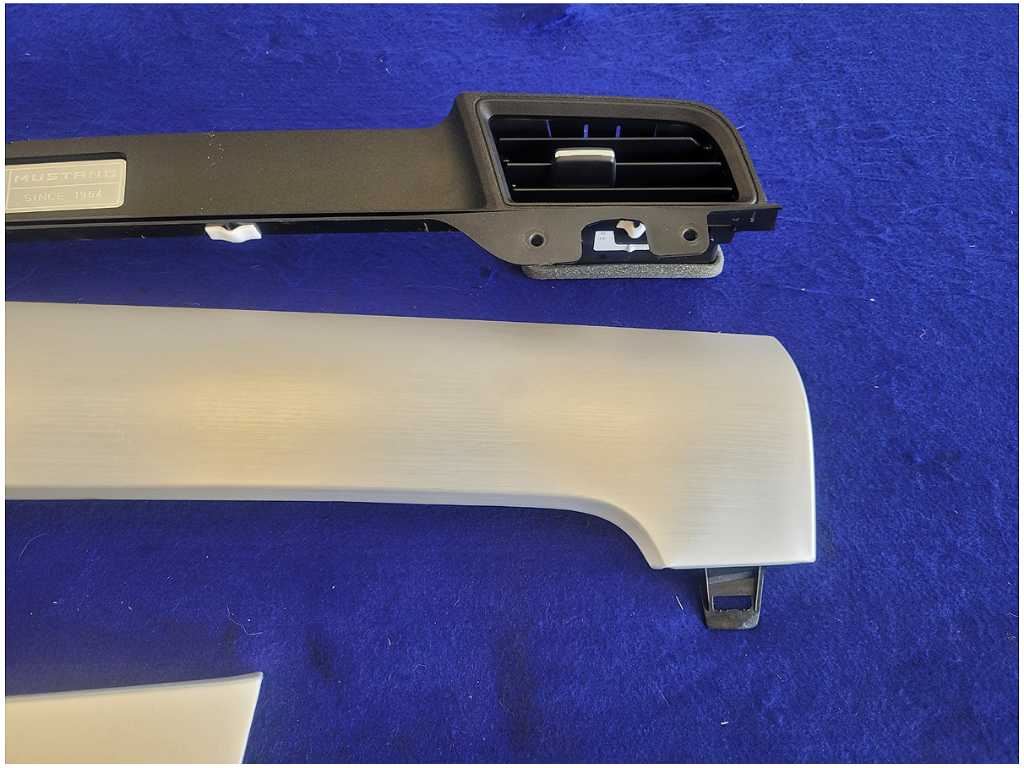 Dash Trim Kit that was removed from a 2015 Ford Mustang GT Coupe with 42k miles. Assembly is still in good condition. We believe you will be refinishing the part to be perfect. We do not warranty the color or the finish. Make sure you verify the part numbers. Please view all pictures before purchasing. This Ford Mustang GT Coupe had a automatic transmission with paint code J4 and axle code YY 3.15.
