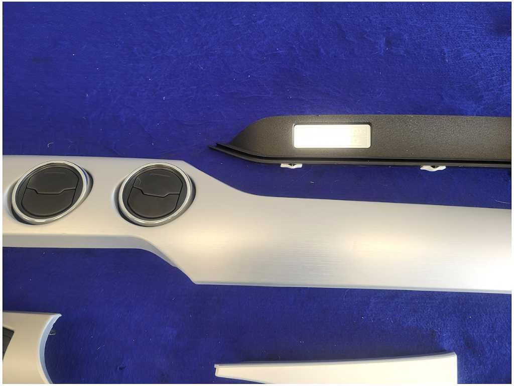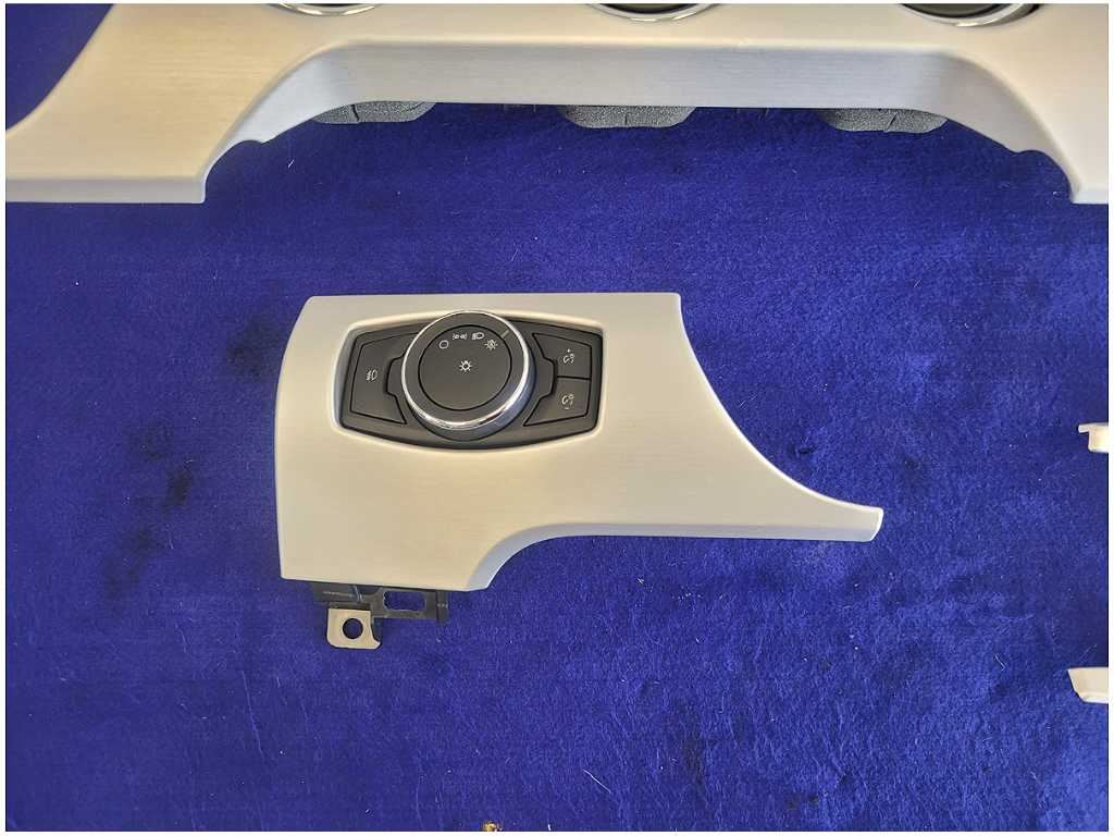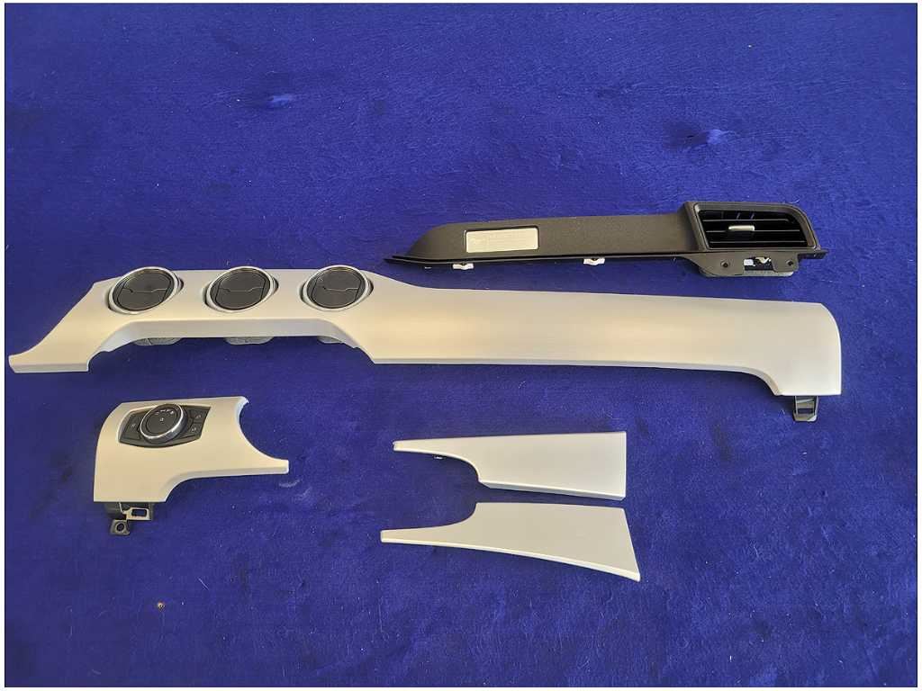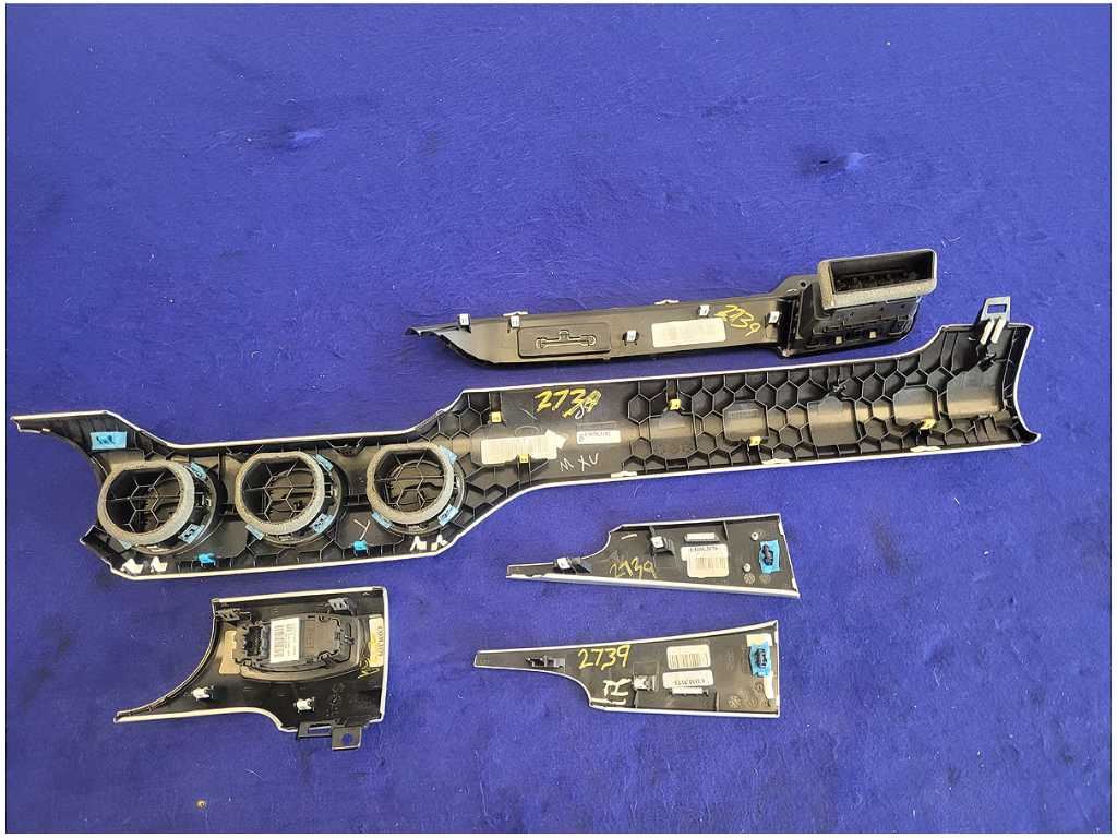 Dash Trim Kit that was removed from a 2015 Ford Mustang GT Coupe with 42k miles. Assembly is still in good condition. We believe you will be refinishing the part to be perfect. We do not warranty the color or the finish. Make sure you verify the part numbers. Please view all pictures before purchasing. This Ford Mustang GT Coupe had a automatic transmission with paint code J4 and axle code YY 3.15.