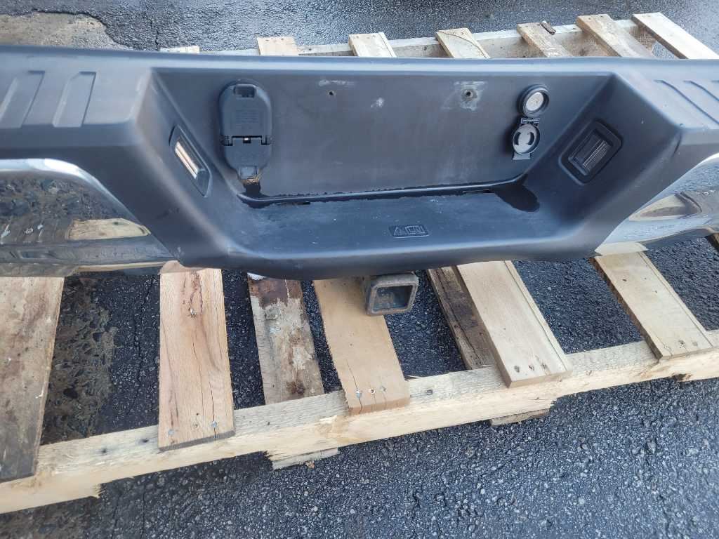 Rear Chrome Bumper and Hitch that was removed from a 2018 Ford F150 4x4 Pickup Truck with 54k Miles. Please note, the finish or color is not under warranty. Ensure to verify the part numbers before purchase. Examine all pictures thoroughly prior to making a decision. The Ford F150 4x4 Pickup Truck featured a automatic transmission, paint code D1, and axle code L6 3.73.