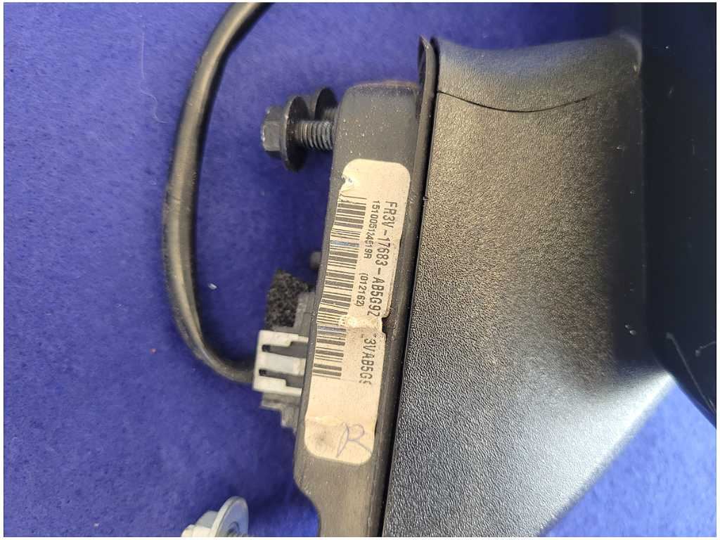 Driver Outer Rear View Mirror that was removed from a 2016 Ford Mustang GT350 Coupe with 49k miles. Spotter Glass!! Assembly has no plug!! For Parts Only!! We do not warranty the color or finish. We believe you will be refinishing the part to be perfect. Make sure you verify the part numbers. Please view all pictures before purchasing. This Ford Mustang GT350 Coupe had a manual transmission with paint code YZ and axle code BB 3.73.