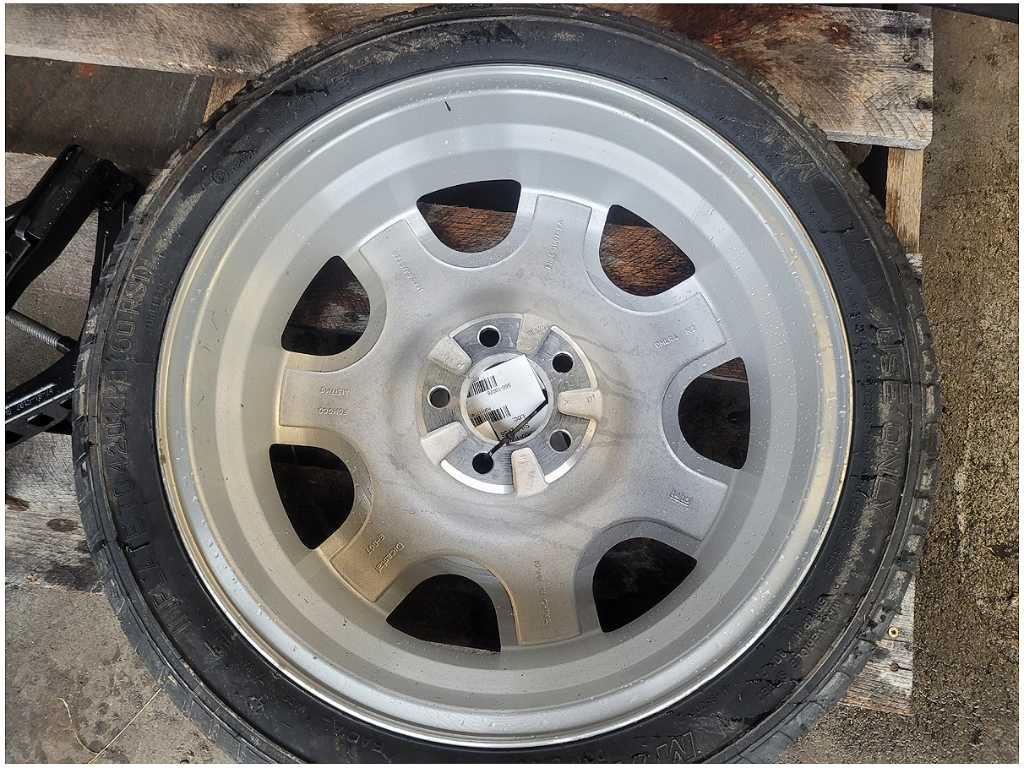This 18" Spare Wheel and Tire that was removed from a 2016 Ford Mustang GT Coupe with 72,573 miles and is still in good condition. Please note, we do not warranty the finish or color, as we assume you will refinish the part to meet your standards. Be sure to verify the part numbers and review all pictures before purchasing. The vehicle had an automatic transmission, paint code RR, and axle code YY 3.15.