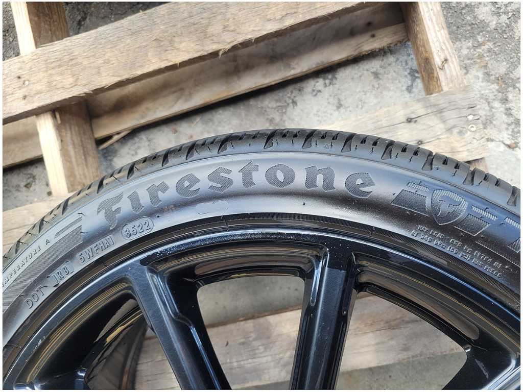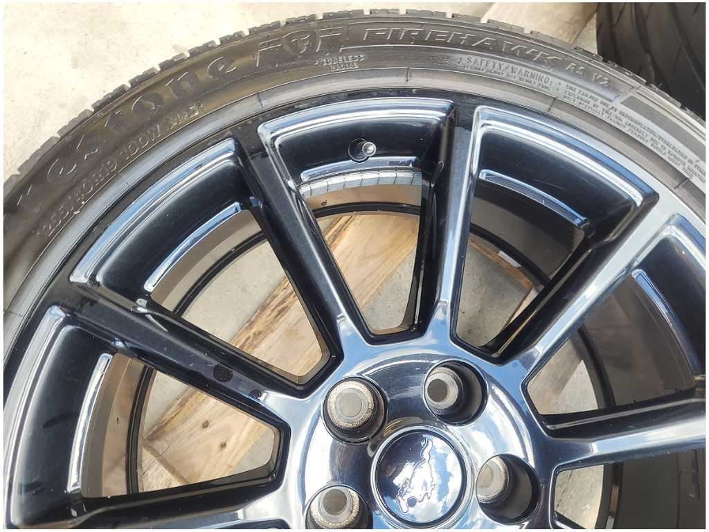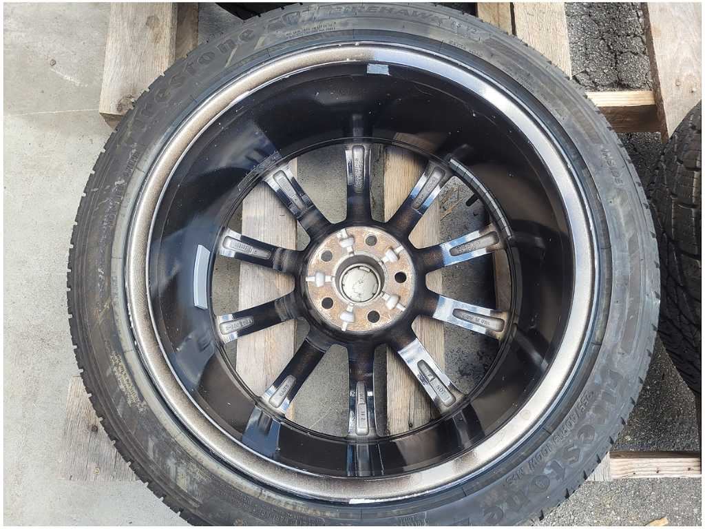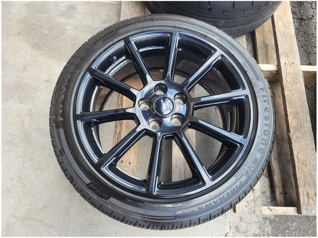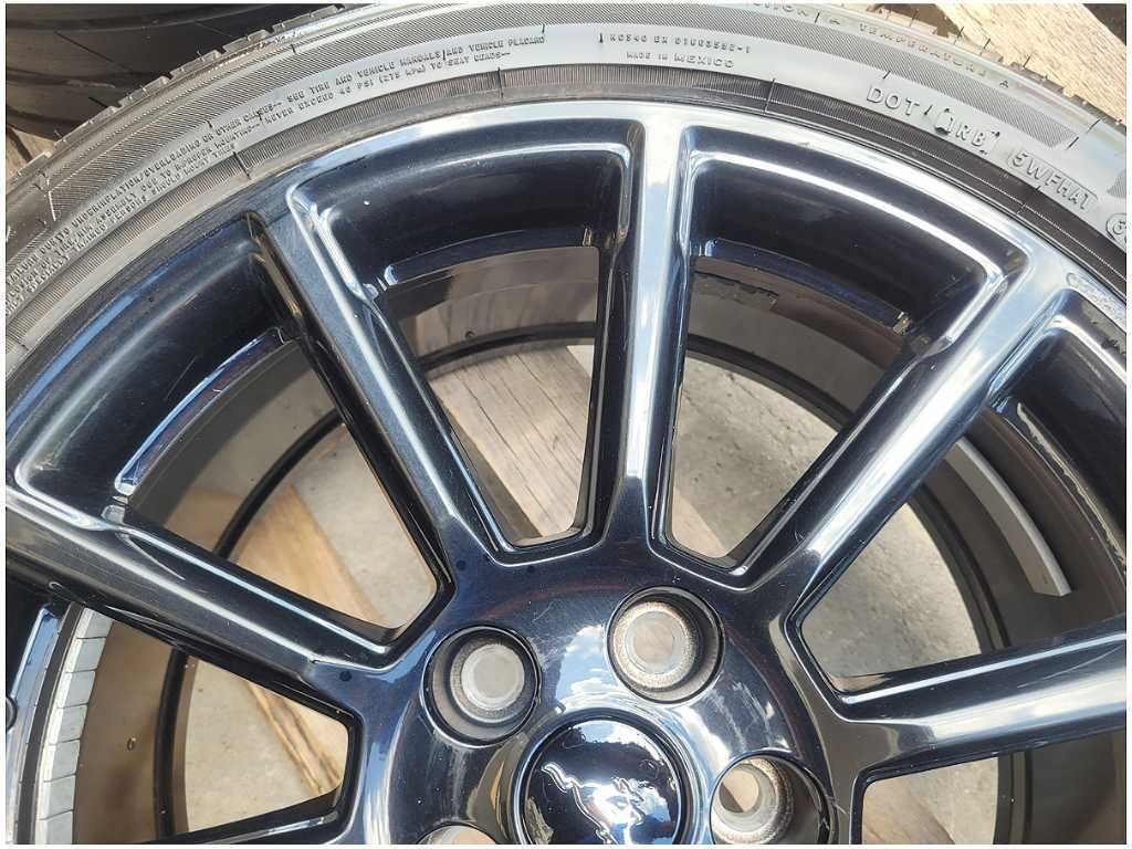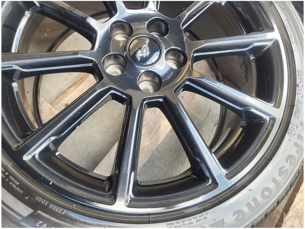 Wheel and Tire that was removed from a 2016 Ford Mustang GT Coupe with 54k miles. Wheel has scuffs and scratches. We believe you will be refinishing the part to be perfect. We do not warranty the color or the finish. Tire is a Firestone Firehawk that measures 255/40/19. We do not warranty the tire!! Make sure you verify the part numbers. Please view all pictures before purchasing. This Ford Mustang GT Coupe had a manual transmission with paint code H3 and axle code DD 3.55.