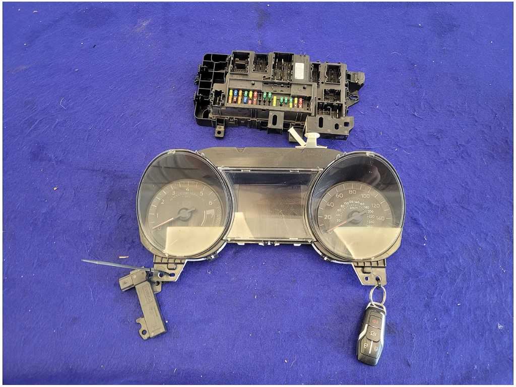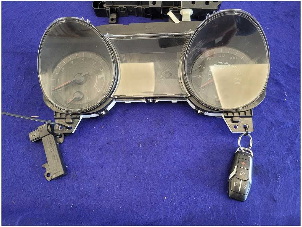 Gauge Cluster, Key and Key Reader that was removed from a 2016 Ford Mustang GT Coupe with 54k miles. Will require reprogramming!!! We believe you will be refinishing the part to be perfect. We do not warranty the color or the finish. Make sure you verify the part numbers. Please view all pictures before purchasing. This Ford Mustang GT Coupe had a manual transmission with paint code H3 and axle code DD 3.55.