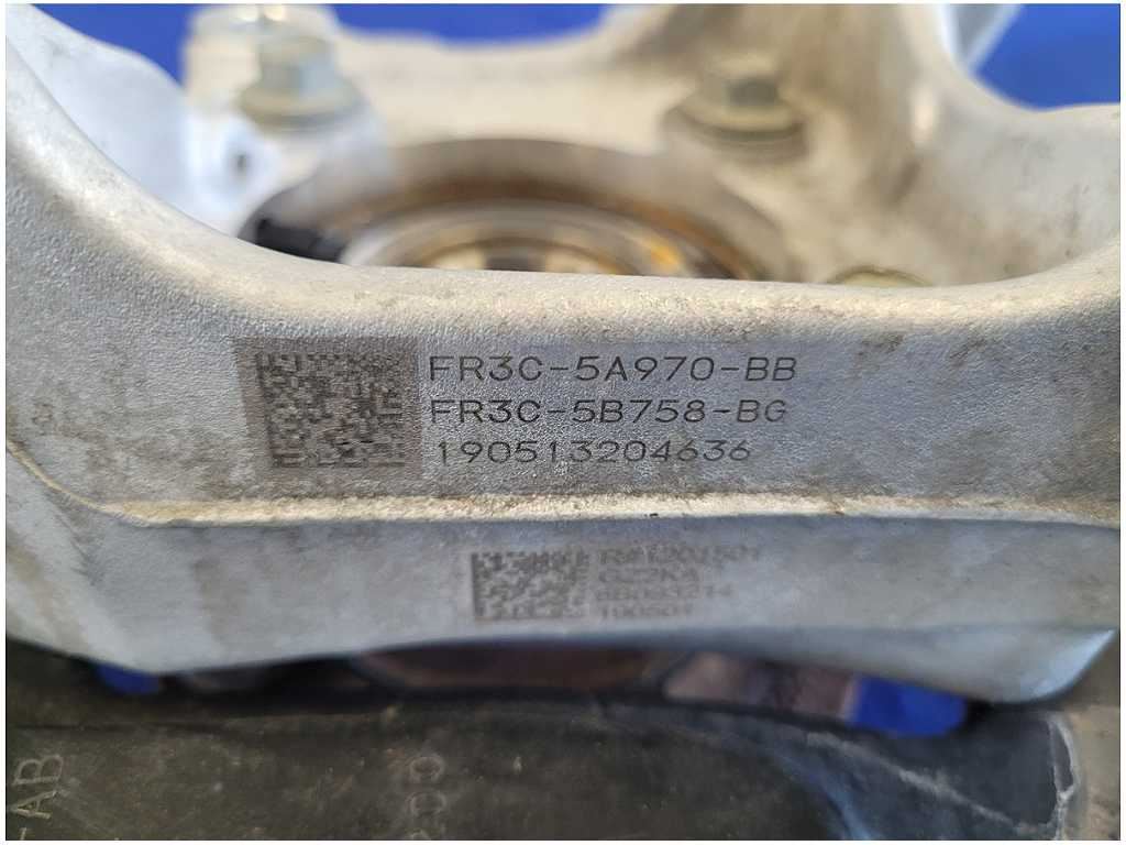 Passenger Rear Spindle or Knuckle that was removed from a Performance Pack 2019 Ford Mustang GT Coupe with 19k miles. We believe you will be refinishing the part to be perfect. We do not warranty the color or the finish. Make sure you verify the part numbers. Please view all pictures before purchasing. This Ford Mustang GT Coupe had an automatic transmission with paint code G1 axle code DD 3.55.