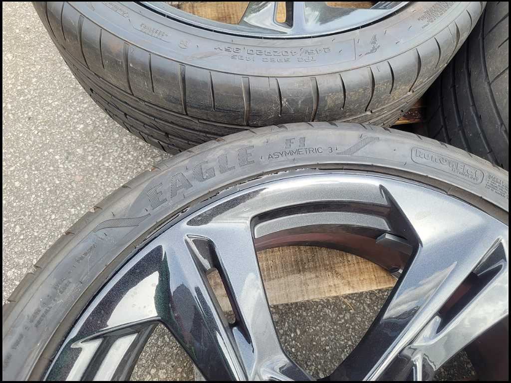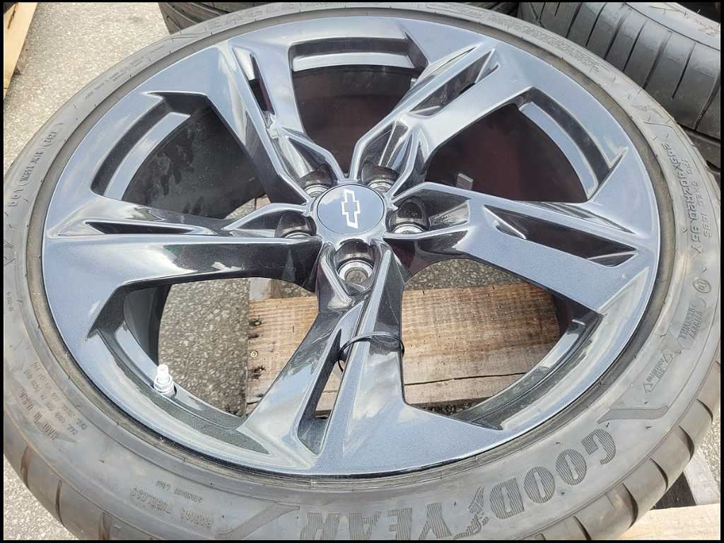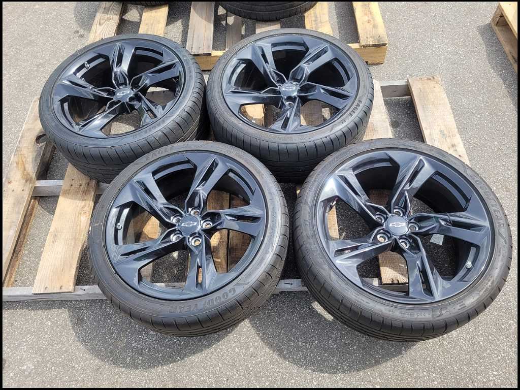 20" Chevy Camaro SS OEM Black Wheel and Tire -New Take Off!! May have scratches from handling!! -Tires are a 245/40/20 in the front and 275/35/20 Goodyear in the rear -Wheels are 20x8.5 in the front and 20x9.5 in the rear -Nice Replacement Wheel and Tire