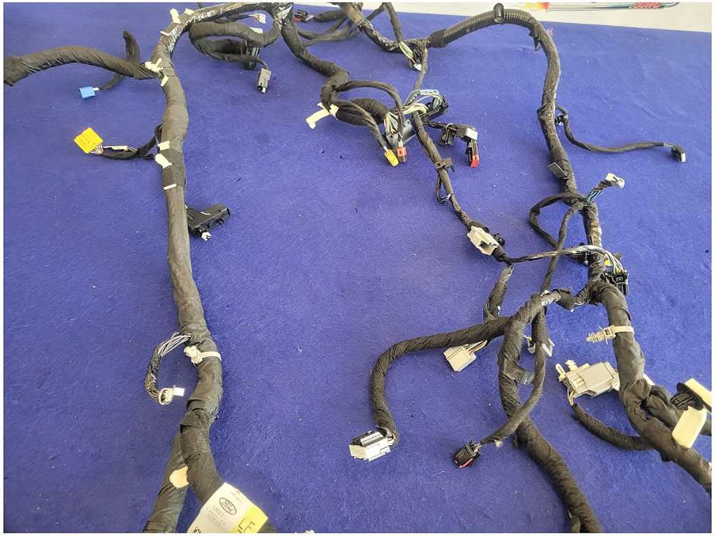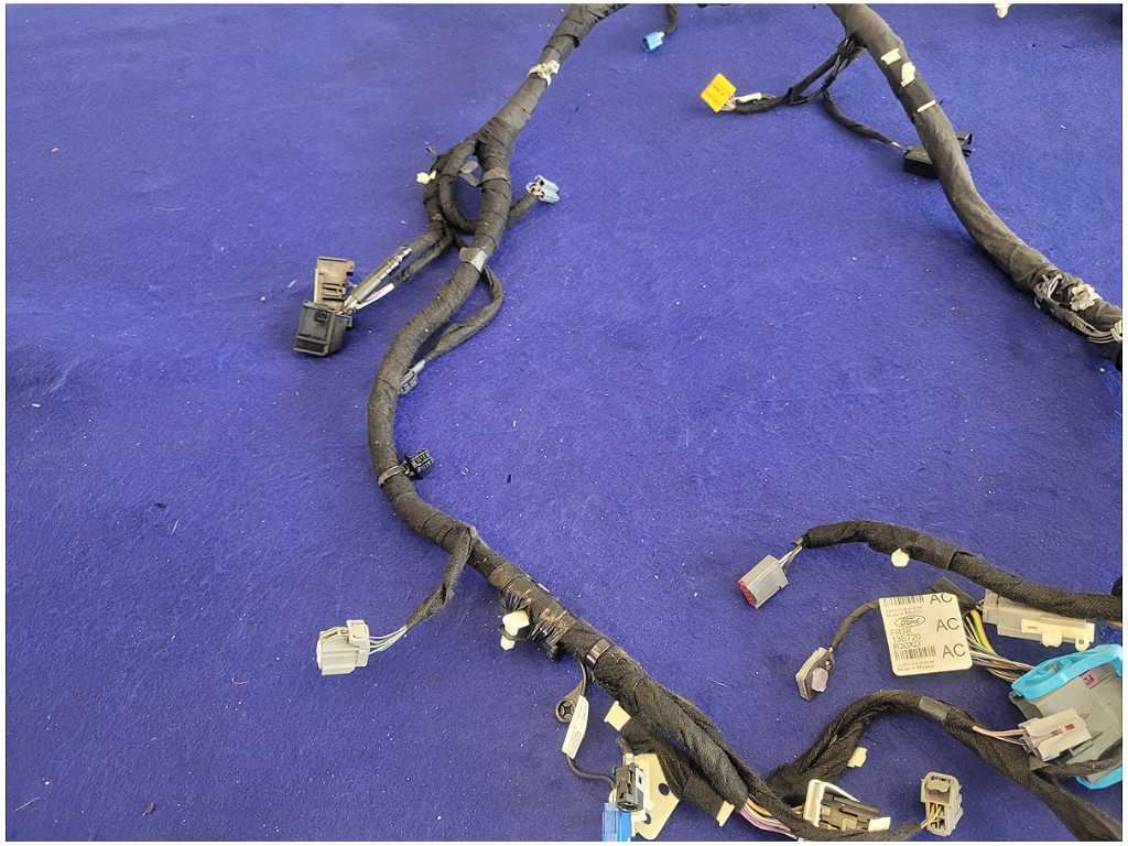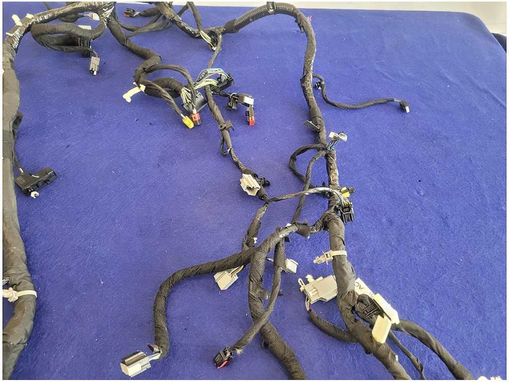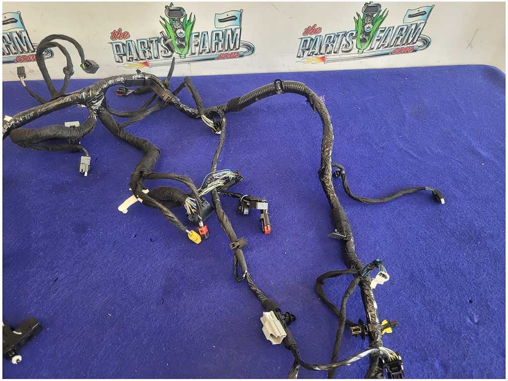 Front Dash Harness that was removed from a 2020 Ford Mustang GT Coupe with 18k miles. Coupe!!! Automatic Transmission!! Assembly has Broken Plugs and Cut Wires!! We believe you will be refinishing the part to be perfect. We do not warranty the color or the finish. Make sure you verify the part numbers. Please view all pictures before purchasing. This Ford Mustang GT Coupe had a automatic transmission with paint code D4 and axle code DD 3.55.