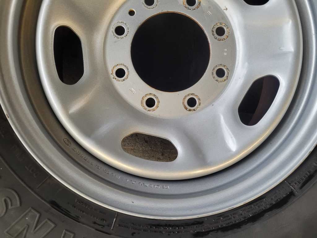 Set of 17x7.5 Steel Wheels and Firestone Tires that was removed from a 2022 Ford F250SD Pickup Truck with 58k miles. Assembly has some scuffs and scratches!! One Tire has some damage!! We do not warranty the tires!! We do not warranty the finish or the color. Please verify the part number before purchasing. Make sure you verify the part number. This Ford F250SD Pickup Truck had an automatic transmission with paint code Z1 and axle code 3J.