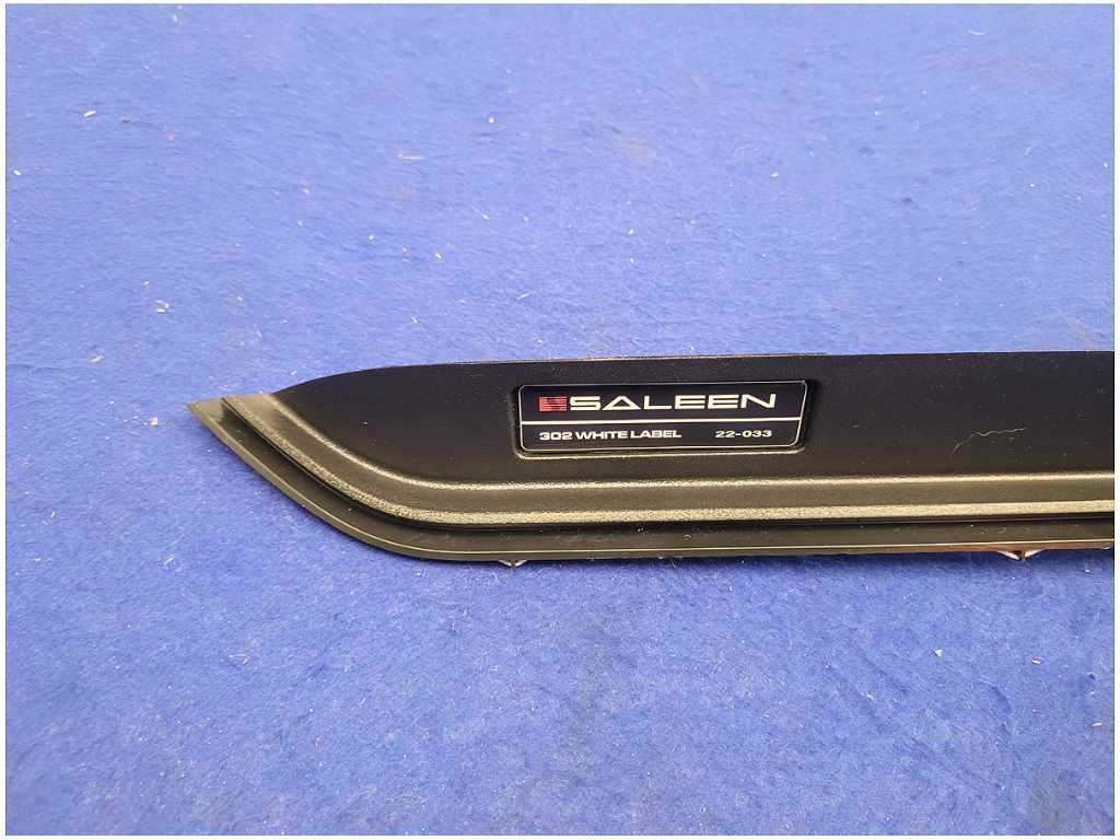 Passenger Dash Plaque that was removed from a Saleen S302 2022 Ford Mustang GT Coupe with 12k miles. White Label #33!! Black in Color!! We believe you will be refinishing the part to be perfect. We do not warranty the color or the finish. Make sure you verify the part numbers. Please view all pictures before purchasing. This Saleen Ford Mustang GT Coupe had a manual transmission with paint code M7 and Saleen Changed Gear to 3.73.
