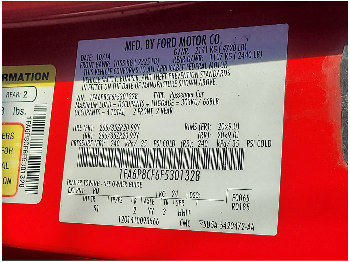 Stock 2778. 2015 Ford Mustang GT S550 Salvage Title Roller Paint PQ Start to a Race Car!!